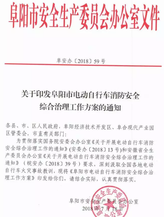 近日,阜阳市安全生产建管局发布了《阜阳市电动自行车消防安全综合治理工作方案》,决心要对阜阳的电动车开展为期5个月的专项治理。整治重点1.电动自行车产品质量。不按标准或者降低标准生产电动自行车及蓄电池、