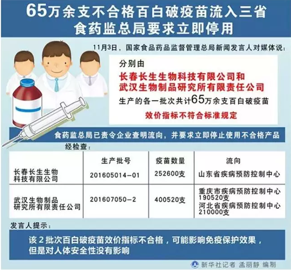 近日长春长生疫苗生产企业因“狂犬病疫苗生产记录造假”遭到吉林省药监局行政处罚,同时国家药监总局于2017年11月3日发布的“吸附无细胞百白破联合疫苗”(简称“百白破”)效价指标检验不符合规定事件(长春