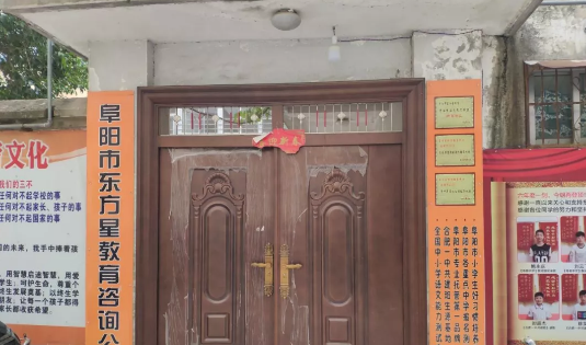 民居改造的教室、狭窄的楼梯,缺失消防器材的通道,这个位于阜阳市人才市场家属院的培训机构,六间不到二十平米的小屋,容纳了近200名不同年级孩子。东方星教育培训机构本是教育咨询机构,未取得办学许可证,招生
